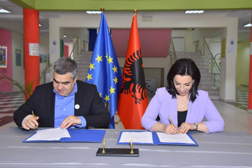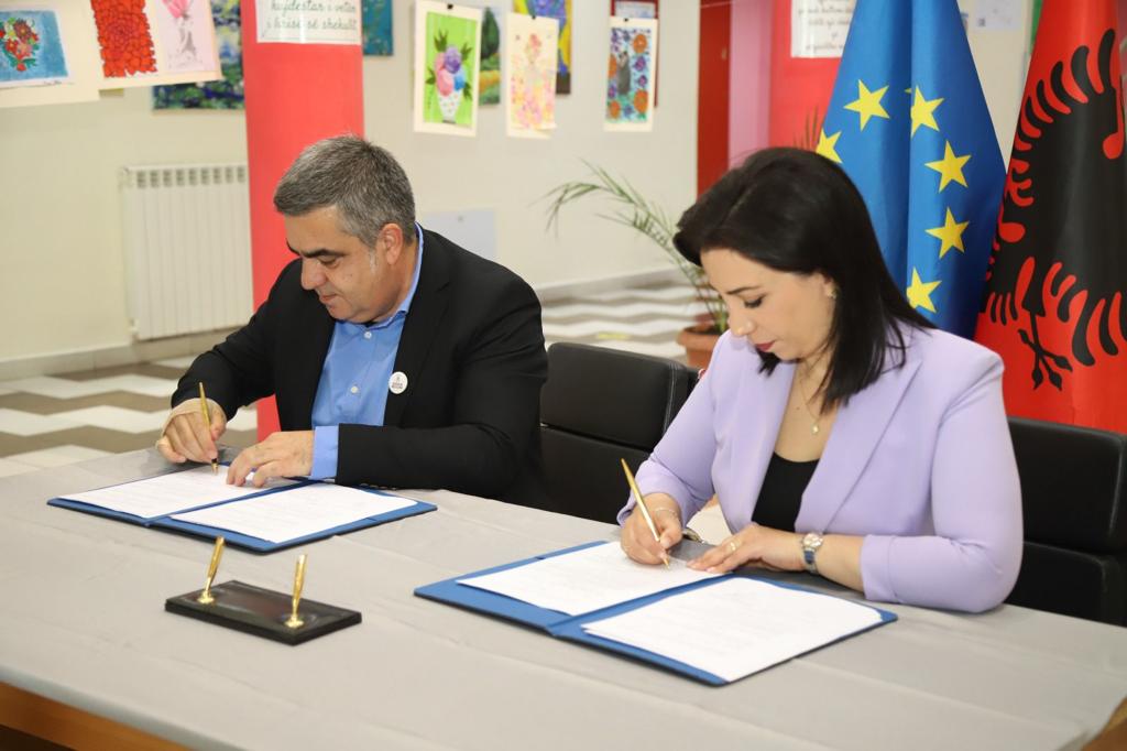 Ministrja e Arsimit dhe Sportit Evis Kushi dhe Drejtori i Përgjithshëm i Drejtorisë së Përgjithshme të Shërbimeve të Transportit Rrugor (DPSHTRR) Blendi Gonxhe nënshkruan një marrëveshje të re bashkëpunimi për hartimin dhe zbatimin e unifikuar të kurrikulës së re të edukimit për sigurinë rrugore.