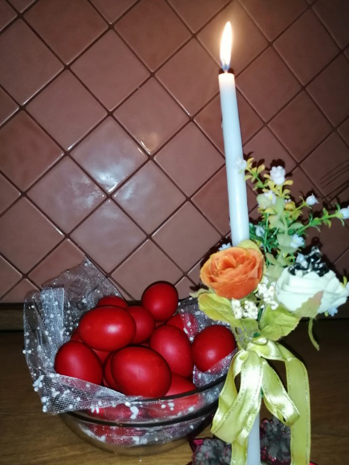 Përgjigja është: ‘Vërtet u Ngjall’!Pjesë tjetër e traditës së Pashkëve është buka e pashkës, ku vendoset veza e kuqe në mes, e cila duke qenë e ëmbël shpreh kuptimin e ëmbëlsisë dhe lumturisë, të cilat i përmbajnë fjalët e Zotit dhe lutjet e besimtarëve. Fjala Pashkë shoqërohet me fjalën e ndritshme, duke treguar ose simbolizuar dritën që del nga varri i Krishtit. Madje për të përforcuar ndritshmërinë e Pashkës besimtarët marrin me anë të llambadave të zbukuruara dritën, të cilën klerikët e marrin nga flaka e kandilit të pashuar të Tryezës së Shenjtë, e cila simbolizon varrin e Krishtit të ngjallur dhe e çojnë në shtëpitë e tyre, duke bërë kryqin në pragun e shtëpisë dhe duke e mbajtur këtë flakë të pashuar për 40 ditë. Marrja e flakës nga Tryeza e Shenjtë që ju jepet besimtarëve simbolizon flakën që del çdo vit nga varri i Krishtit në Jeruzalem ditën e Pashkëve Orthodhokse, flakë e cila merret dhe shpërndahet nëpër kisha të vendeve të ndryshme.