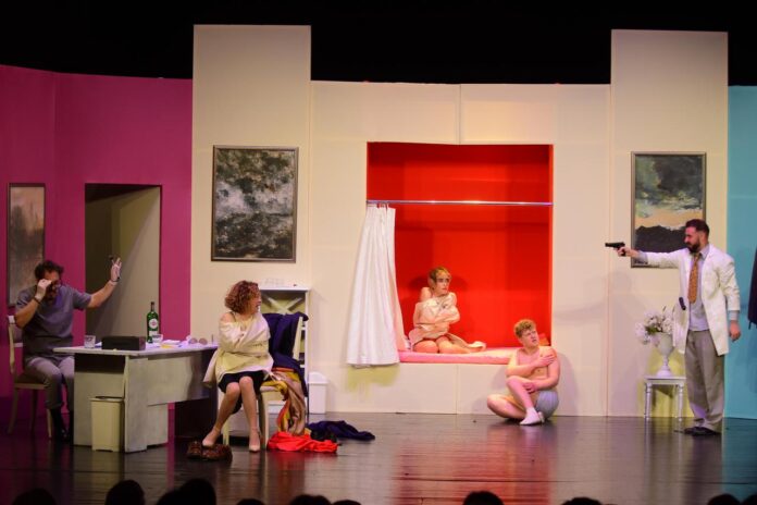 Një komedi e egër e pushtuar nga humori i rrallë, plot gënjeshtra, të qeshura dhe kthesa, i cili satirizon ashpër moralin dhe patologjitë e shoqërisë në rënie është vënë në teatrin “Skampa” Elbasan.