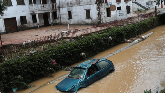 Video-pamjet e shpërndara në rrjetet sociale, tregojnë lagje nën ujë, autostrada të përmbytura dhe grumbuj të mëdhenj mbeturinash.