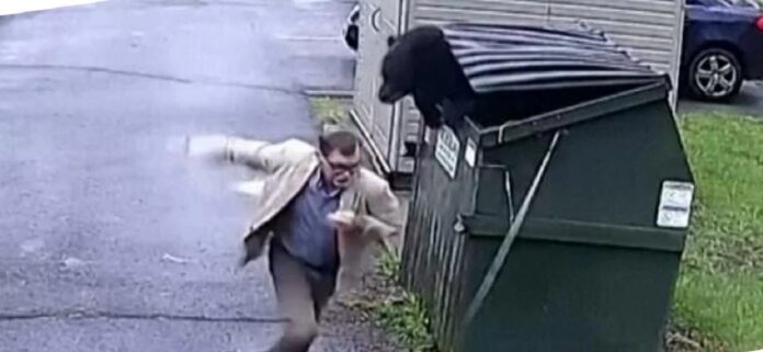 Pamjet e kamerave të sigurisë, kanë kapur momentin kur një drejtor shkolle, u përball me një ari teksa zhbllokonte kapakun e një kosh.