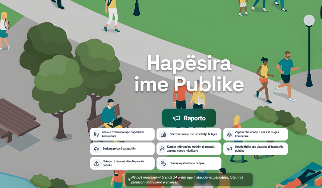 Në portalin “Hapësira ime publike” mund të denoncohen të gjitha rastet që shqetësojnë komunitetin duke nisur nga zënia e trotuareve, parkimet e paligjshme, ndërtime pa leje, dëme të pronës publike, ndotje fizike apo akustike të hapësirës publike, zaptim të rrugëve kombëtare, përfshirë kantieret e ndërtimit me rrethime të pasigurta.