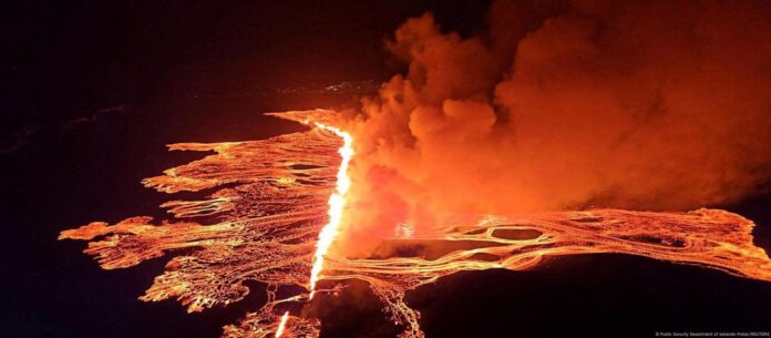 Pamjet e drejtpërdrejta nga transmetuesi publik RÚV treguan lavë të kuqe të ndezur që dilte nga çarja në tokë.