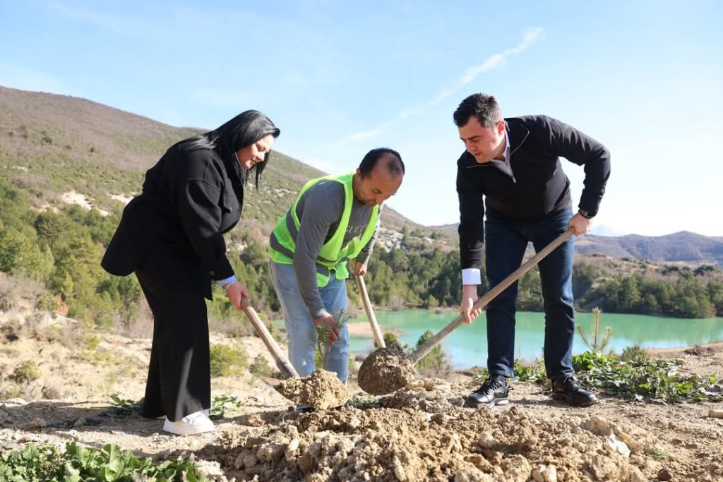 Pranë liqenit të Valeshit, Elbasan janë mbjellë 6,000 fidanë pishe të reja, në një zonë që ka vuajtur nga erozioni.