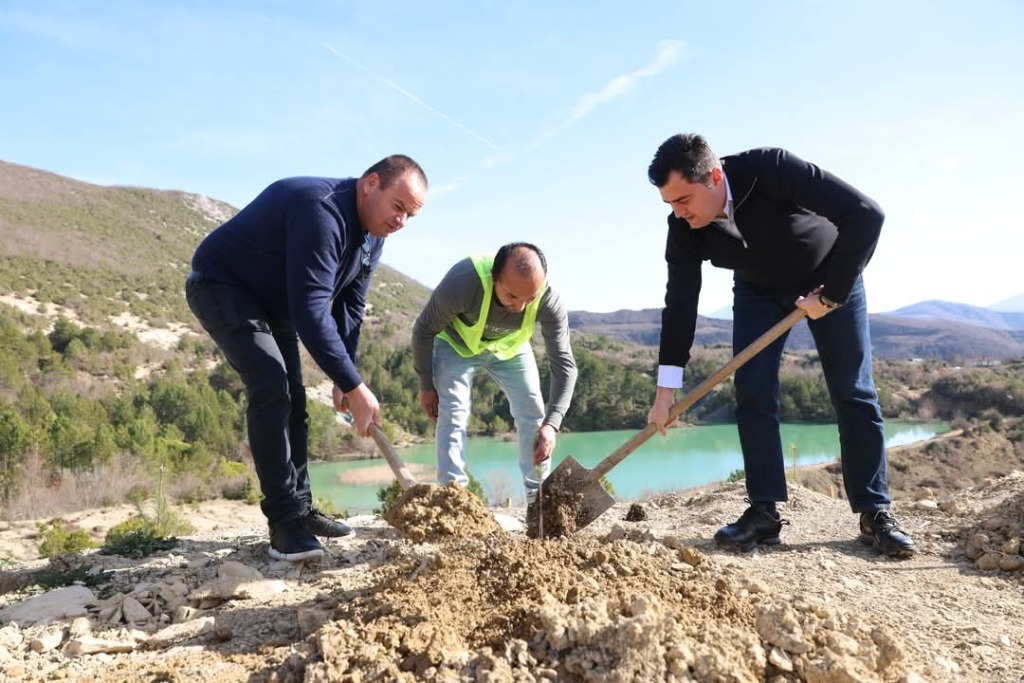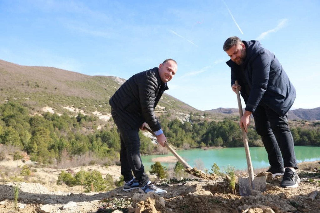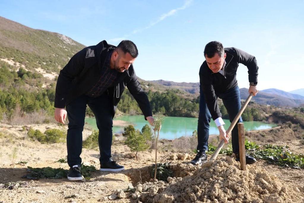 Pranë liqenit të Valeshit, Elbasan janë mbjellë 6,000 fidanë pishe të reja, në një zonë që ka vuajtur nga erozioni.