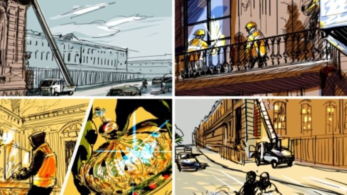 Katër grabitës përdorën ashensorin e ngarkesave të një kamioni që e kishin parkuar kundër drejtimit të trafikut buzë lumit Sena, për të arritur në ballkonin e katit të parë; ata hynë në muze dhe dolën pak minuta më vonë duke marrë me vete nëntë stoli, pastaj u larguan me dy skuterë Yamaha TMax