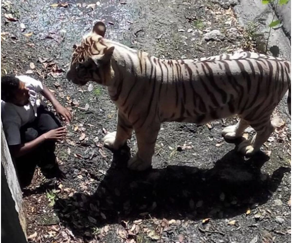 Maqsood Khan kërceu brenda ndarjes së tigrit në kopshtin zoologjik të New Dehli megjithë paralajmërimet dhe tentativat e sigurisë për ta ndaluar. Vizitorët e shokuar regjistruan incidentin me celularët e tyre kur 22-vjeçari u vendos fytyrë më fytyrë me tigrin shtatë vjeçar Vijay.