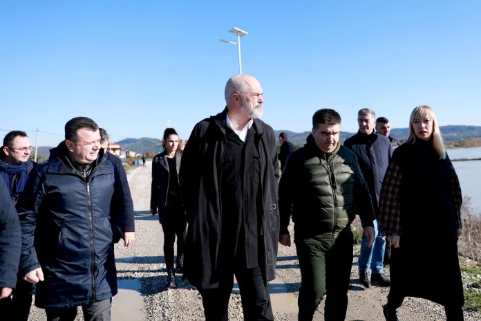 ATSH/ Kryeministri Edi Rama inspektoi sot nga afër situatën në urën e Mifolit, ku si pasojë e fryrjes së ujërave të lumit Vjosë u shkaktuan përmbytje në disa qindra hektarë në zonën e Fierit dhe të Vlorës.