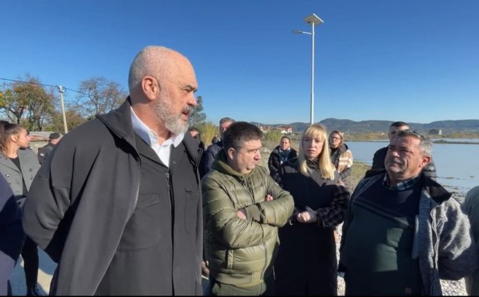 ATSH/ Kryeministri Edi Rama inspektoi sot nga afër situatën në urën e Mifolit, ku si pasojë e fryrjes së ujërave të lumit të Vjosës u shkaktuan përmbytje në disa qindra hektarë në zonën e Fierit dhe të Vlorës.