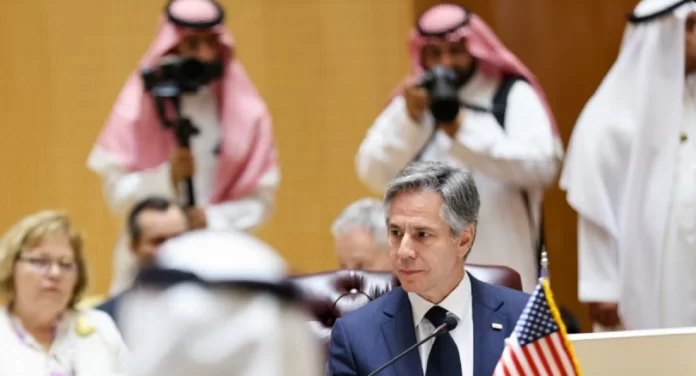 Blinken ishte njëri ndër organizatorët e konferencës si pjesë e një vizite dyditore në Arabinë Saudite, në të cilën ai u takua me zyrtarë të lartë sauditë, përfshirë udhëheqësin de fakto të vendit, princin e kurorës, Mohammed bin Salman. Blinken mori pjesë gjithashtu në një takim të ministrave të jashtëm të Gjirit.