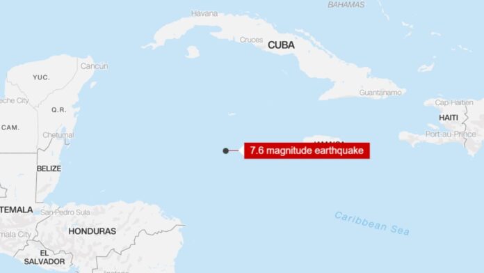Një tërmet me magnitudë 7.6 ka ndodhur të shtunën në Detin e Karaibeve, sipas Shërbimit Gjeologjik të SHBA-së, duke shkaktuar një paralajmërim për cunami.