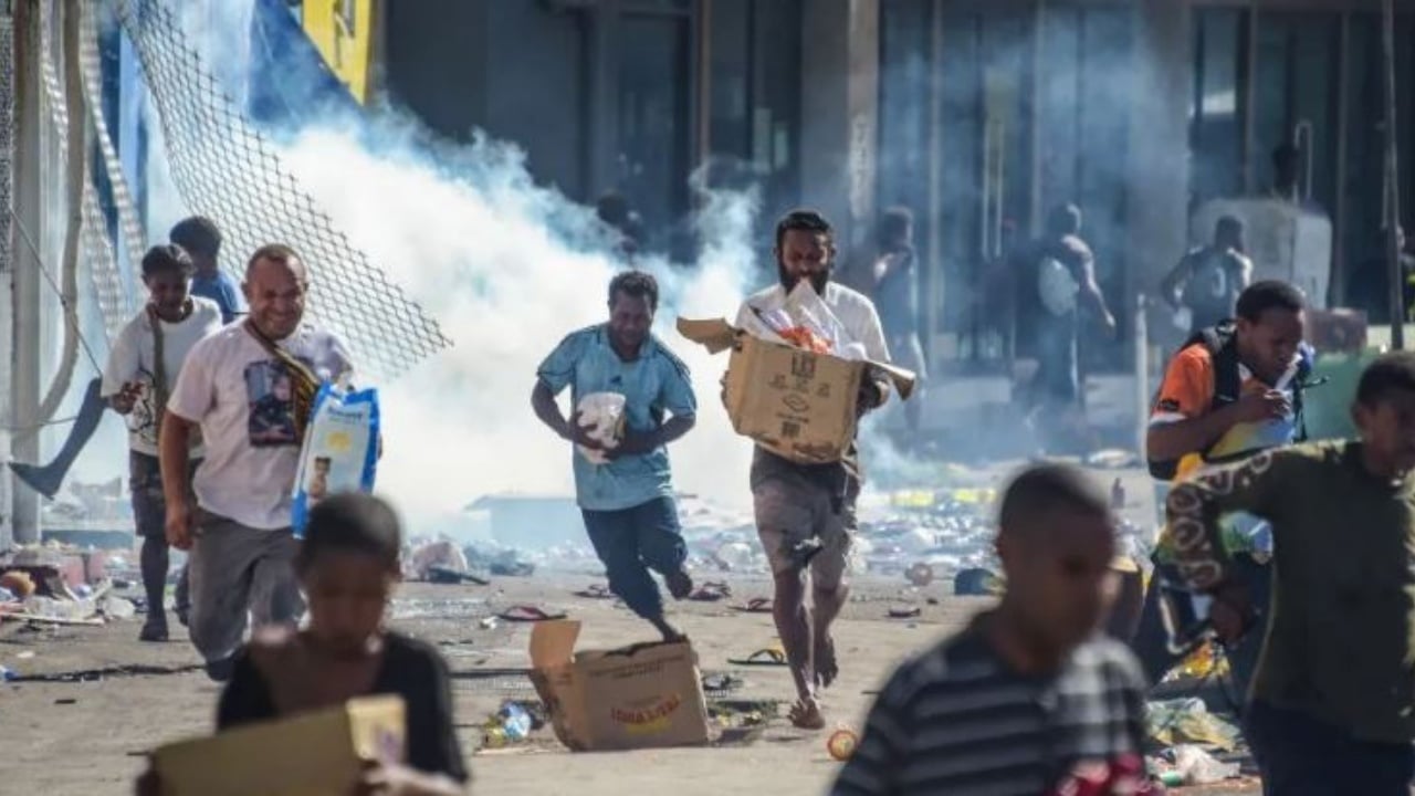 Dyqanet dhe makinat u dogjën dhe supermarketet u plaçkitën pasi policia hyri në grevë për një mosmarrëveshje pagash. Qindra kishin dalë në rrugë të mërkurën. Më pas, kryeministri James Marape iu drejtua kombit duke thënë se paligjshmëria nuk do të tolerohej.