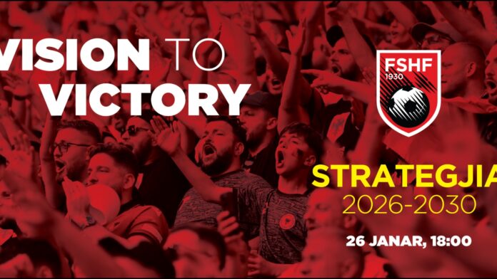 Federata Shqiptar e Futbollit do të prezantojë ditën e hënë, më 26 janar në “Shtëpinë e Futbollit”, strategjinë 2026-2030 “Vision To Victory”, dokumenti strategjik që përcakton drejtimin, prioritetet dhe objektivat e zhvillimit të futbollit shqiptar për 4 vitet e ardhshme.